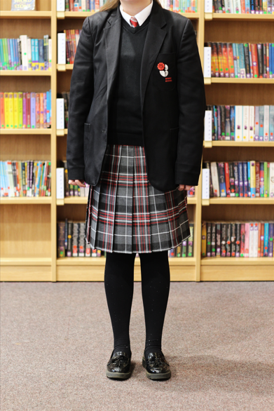 The older year groups will have the option to wear the new skirt, or the black one seen above. By 2029, we expect all year groups to be wearing the checked skirt if choosing to wear a skirt (trousers also acceptable).