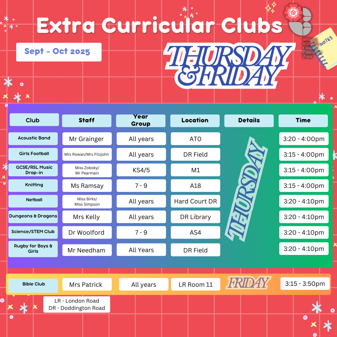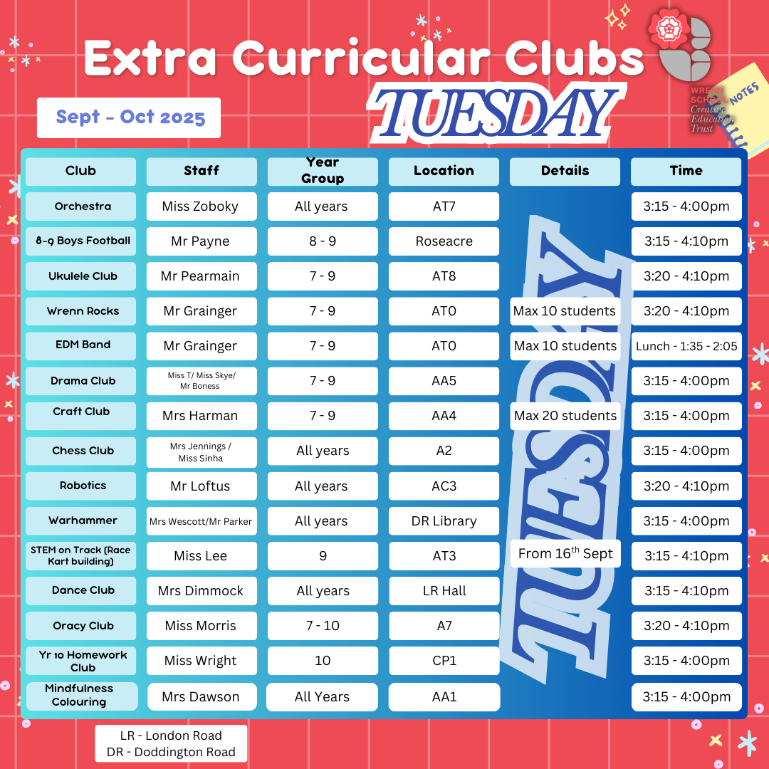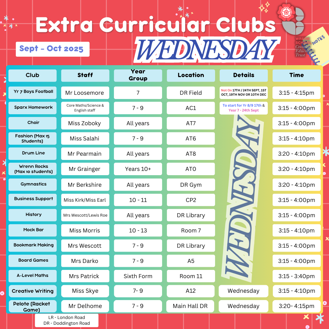 Wrenn offers a wide range of Extra Curricular events, both at lunch time and after school.