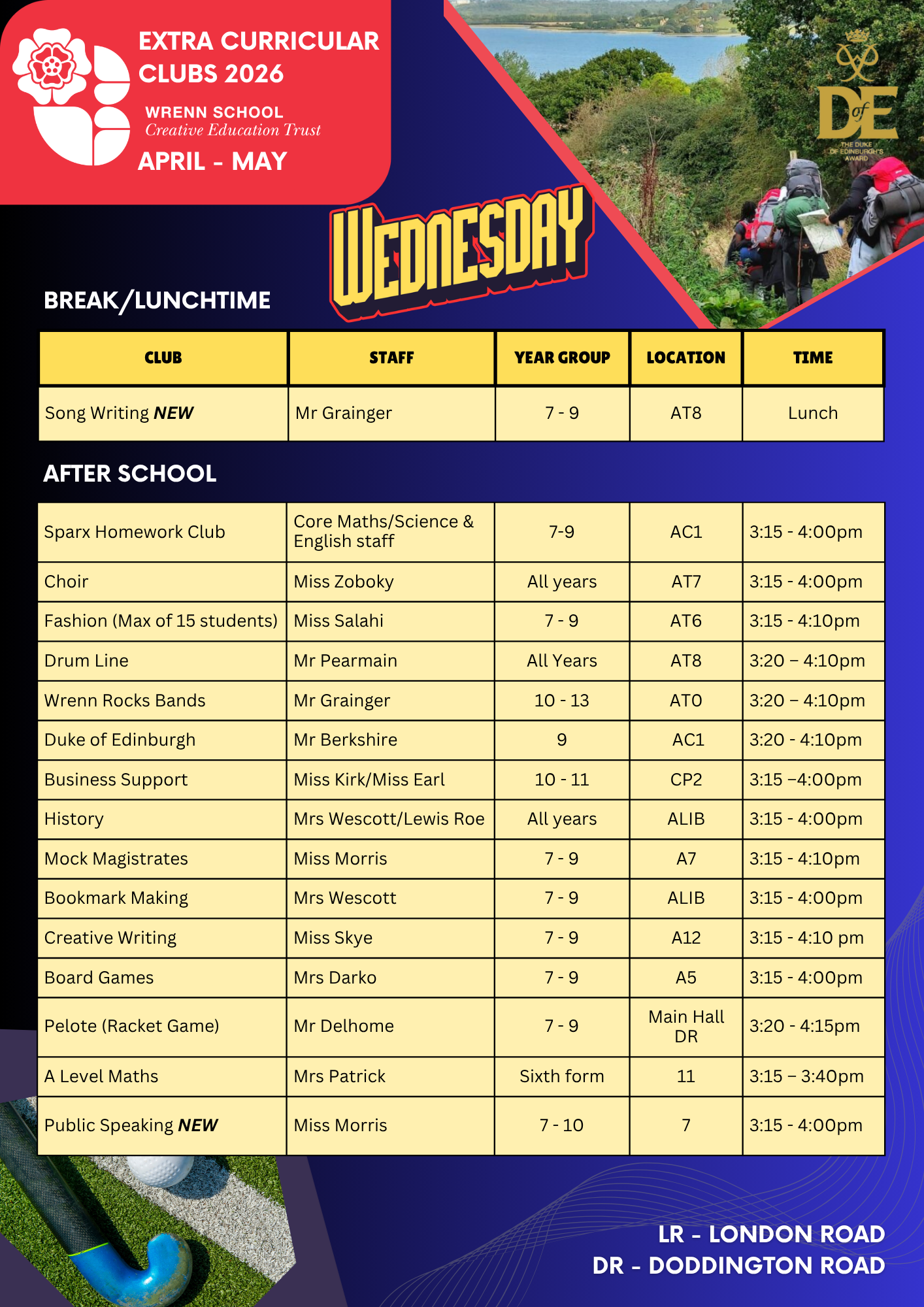 The extra-curricular programme provides students with experiences outside of their normal curriculum and also allows them to potentially build upon work they have done in class.